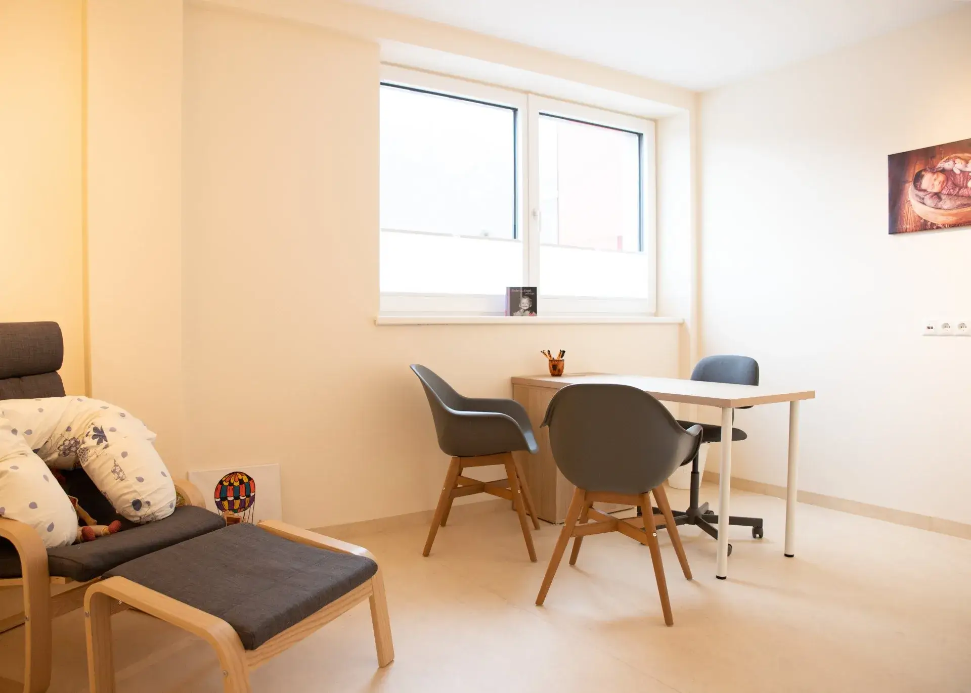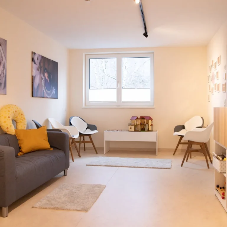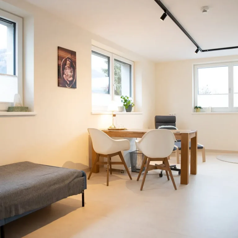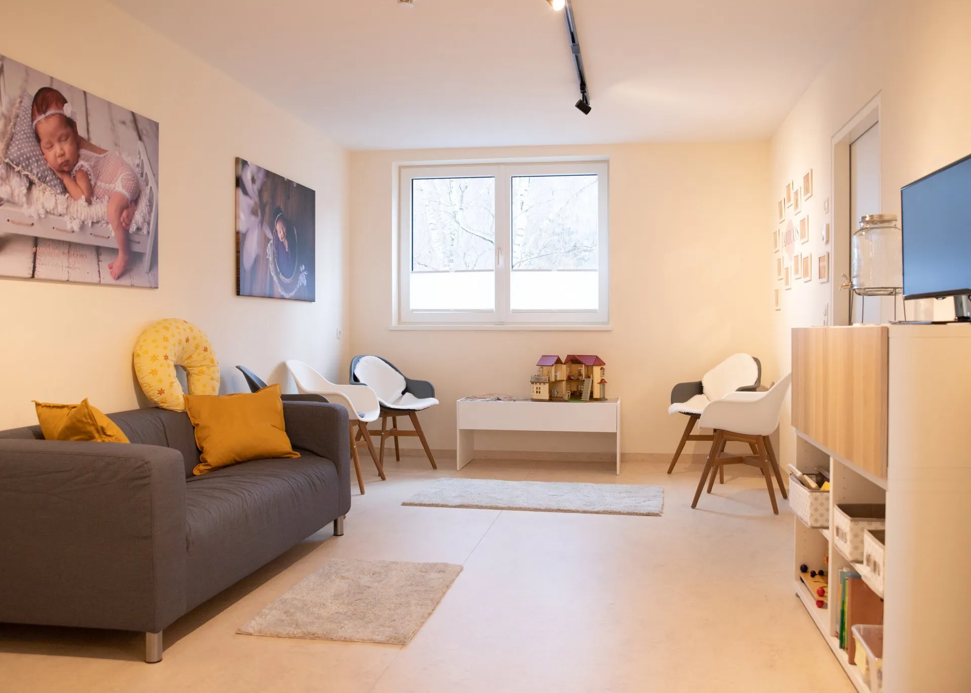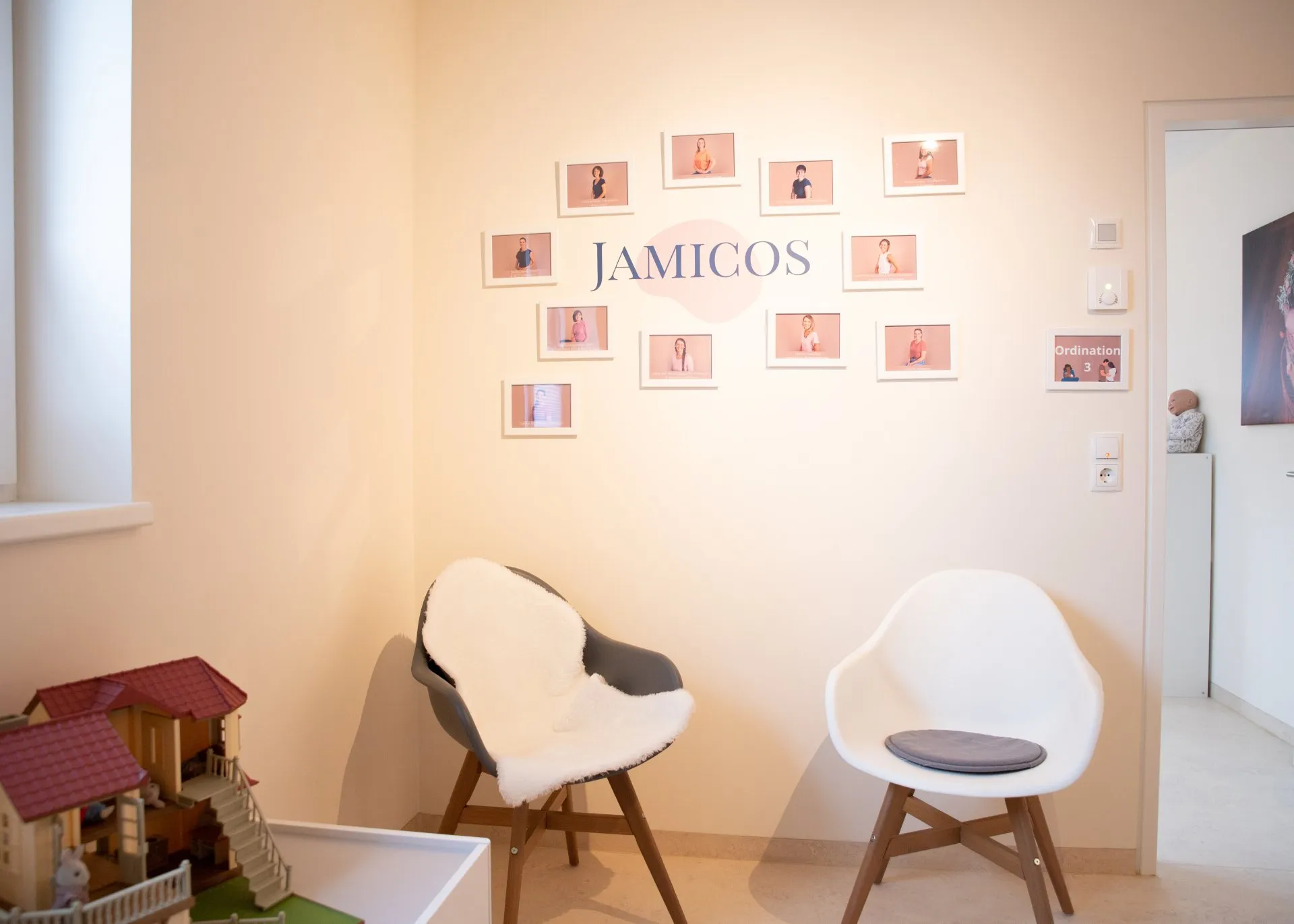 Das Jamicos Gesundheitszentrum besteht aus 4 Räumen, 3 davon sind Behandlungs / Beratungsräume, 1 Raum ist unser Kursraum. Zudem gibt es ein Patienten - WC inklusive Kinder WC und Wickeltisch, einen großen Wartebereich mit Stillplatz und Kinderspielbereich. Zu unserem Gebäude gehören eigene Parkplätze, welche sich sowohl neben dem Gebäude als auch gegenüber des Gebäudes befinden (mit "Jamicos " beschriftet).